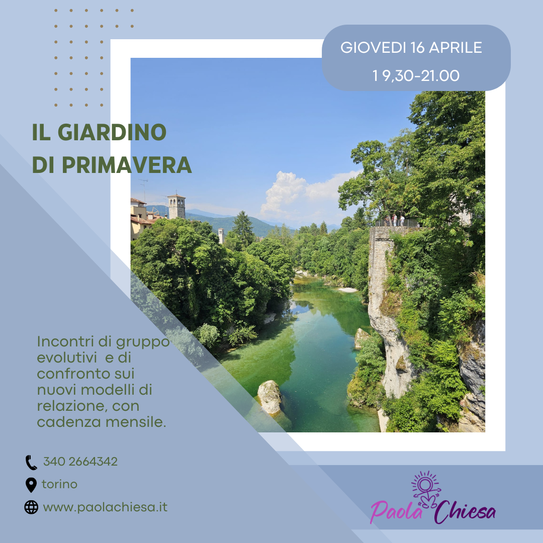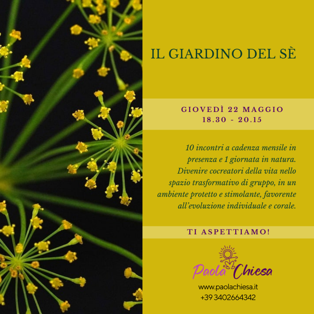 I ‘Giardini’ sono uno spazio corale rigenerante mensile: tempi e temi diversi stimolano curiosità e producono armonia. Il gruppo ci permette di spingerci laddove da soli è più complesso giungere. Ci sentiamo spesso soli e diversi di fronte alle domande della vita, alla tristezza e al dolore. L’alto valore del gruppo sollecita la visione più ampia, unisce agli altri nel sostegno reciproco, nella tenerezza espressa, nel sentire condiviso e nell’esplorazione delle tematiche comuni. Ognuno contribuisce con energia, unicità e intuizione. Scegli il tuo ‘GIARDINO’: guarda ogni mese le proposte e contattami per ulteriori informazioni. Sei accolto con gioia!
